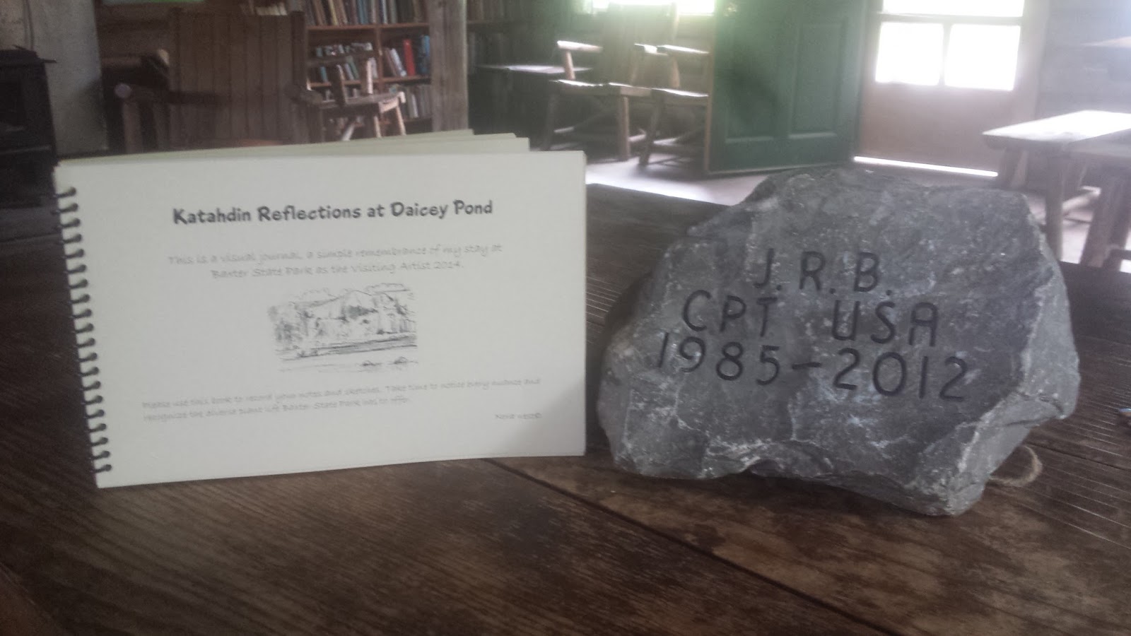 Katahdin Stream Campground was our next stop. This was far more familiar, as we had all been there just a month earlier as part of TSP at BSP 2015. It's unbelievable how fast a month has passed. It was another reminder to me just how important each day is and how much I appreciated the chance to spend my weekend in the park as part of TSP. The ranger at Katahdin Stream was out, so Andrew and Jay did not get to meet him. They did, however, get to take a couple of photos on the porch of the Ranger Station where so many Katahdin hikers have stopped. This made me think of Mike Keighley who is currently thru-hiking the AT headed for Maine. Jay will be making his way to Mike in the upcoming week to hike back to Katahdin Stream and summit Katahdin with Mike in late July.